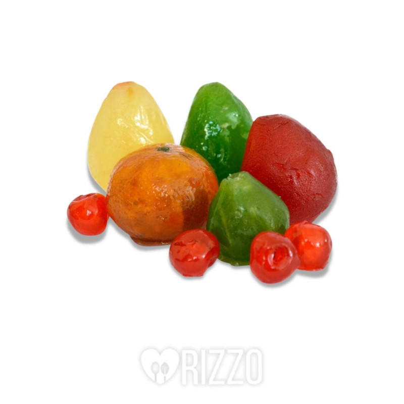 Frutta mista intera assortita candita. Secondo la tipologia o forma puo'