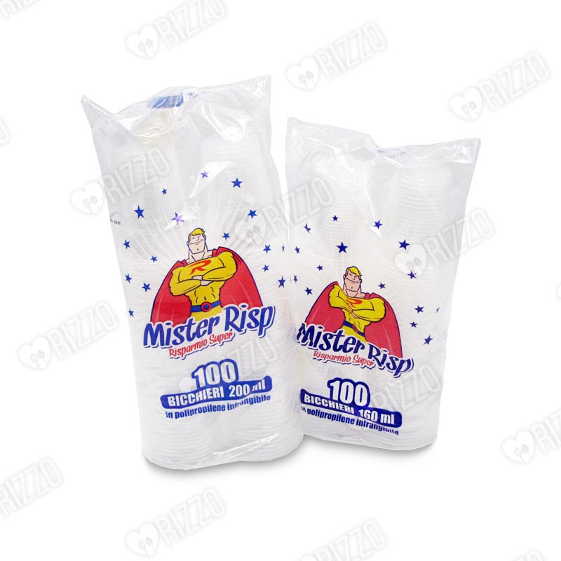 Confezione di bicchieri d'acqua monouso in prolipropilene infrangibile.