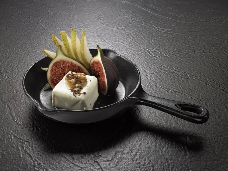 Padellino nero in melamina per servire aperitivi sfiziosi ed