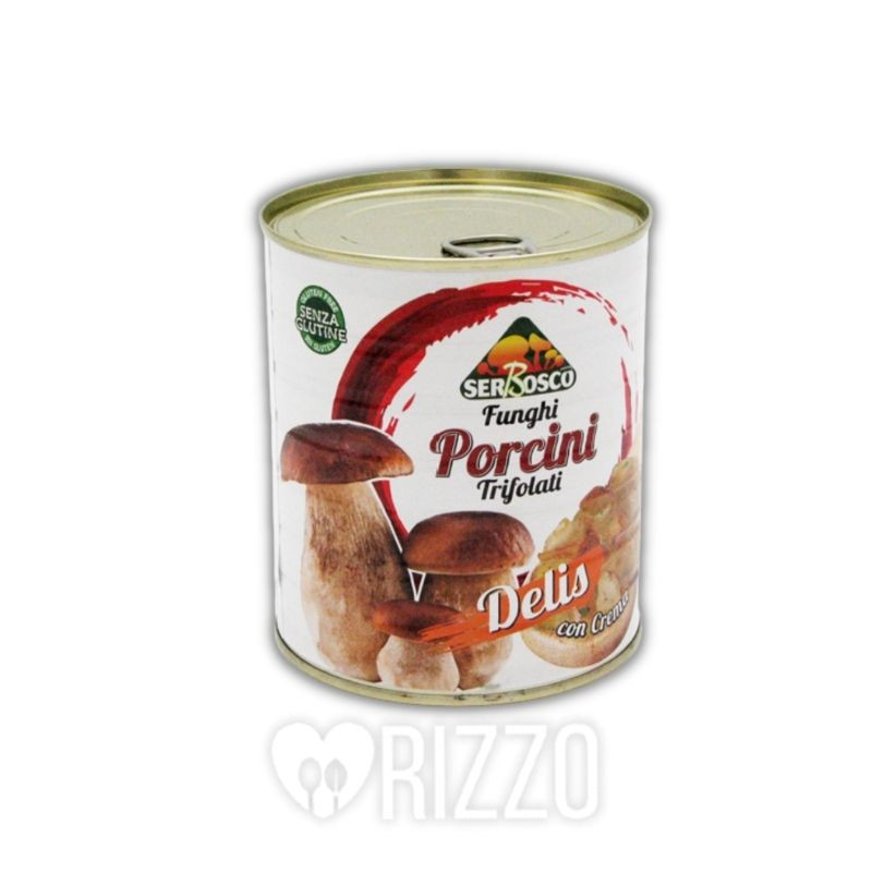 Funghi porcini trifolati a fette in scatola da 800 gr con crema. Serbosco